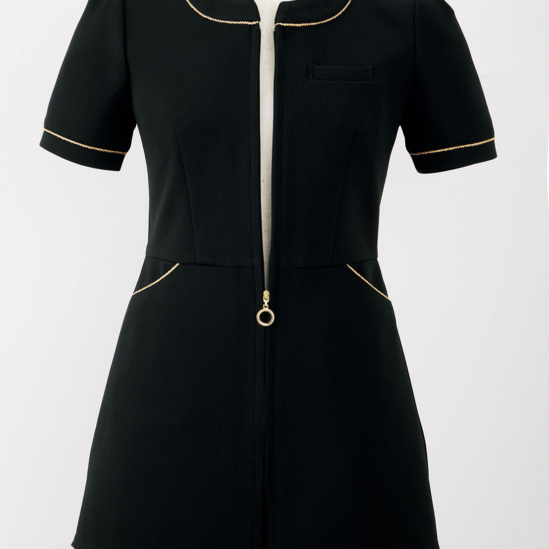 【2026年最新エステユニフォーム-enjoie/株式会社ジョア-42059-2】チュニックジャケット(ブラック)【バスケットニット】