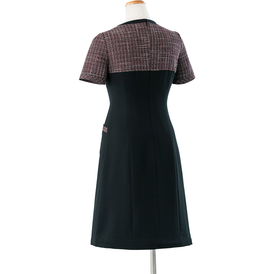 【enjoie/株式会社ジョア-61430-16】ワンピース(ワイン)【[身頃部分]スラブチェック、[スカート部分]フレキシブルサージ】