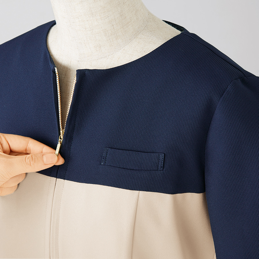 女性らしい美しさと機能性を両立、また、襟元のデザインや配色生地にもこだわり抜いた
