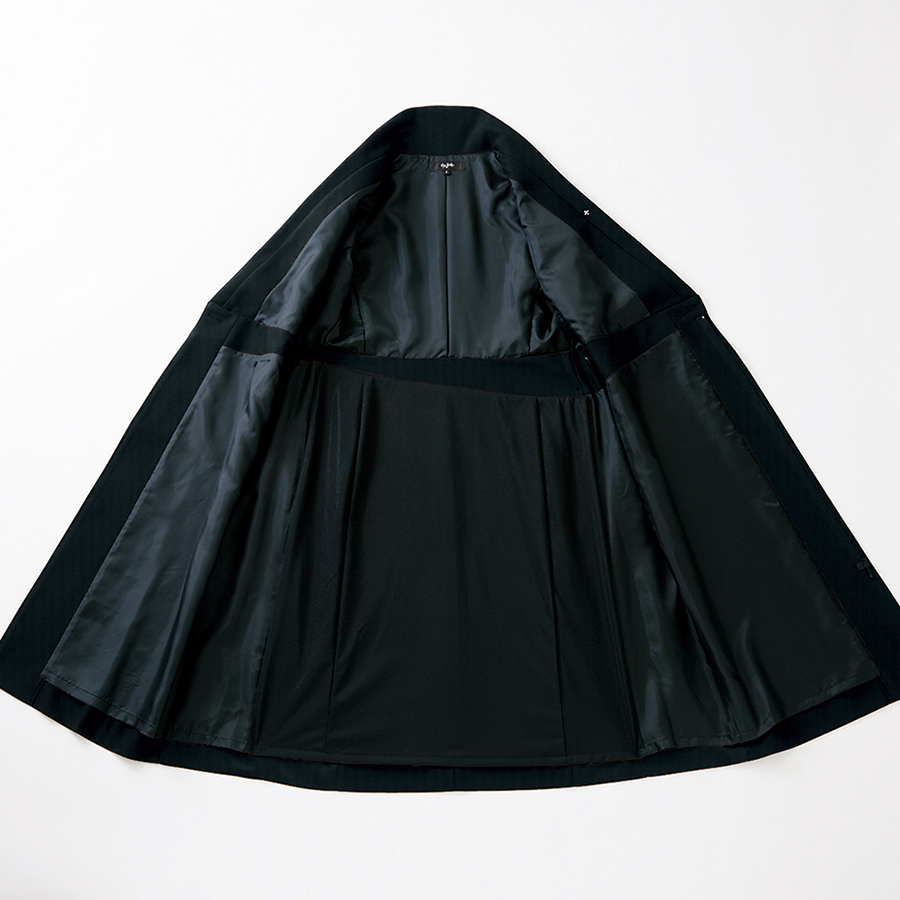 2WAYストレッチ素材を使用した、抜群の動きやすさが魅力の新シリーズは、パイピングやボタンでかがやきもプラスしたロイヤルなアイテムを展開。
