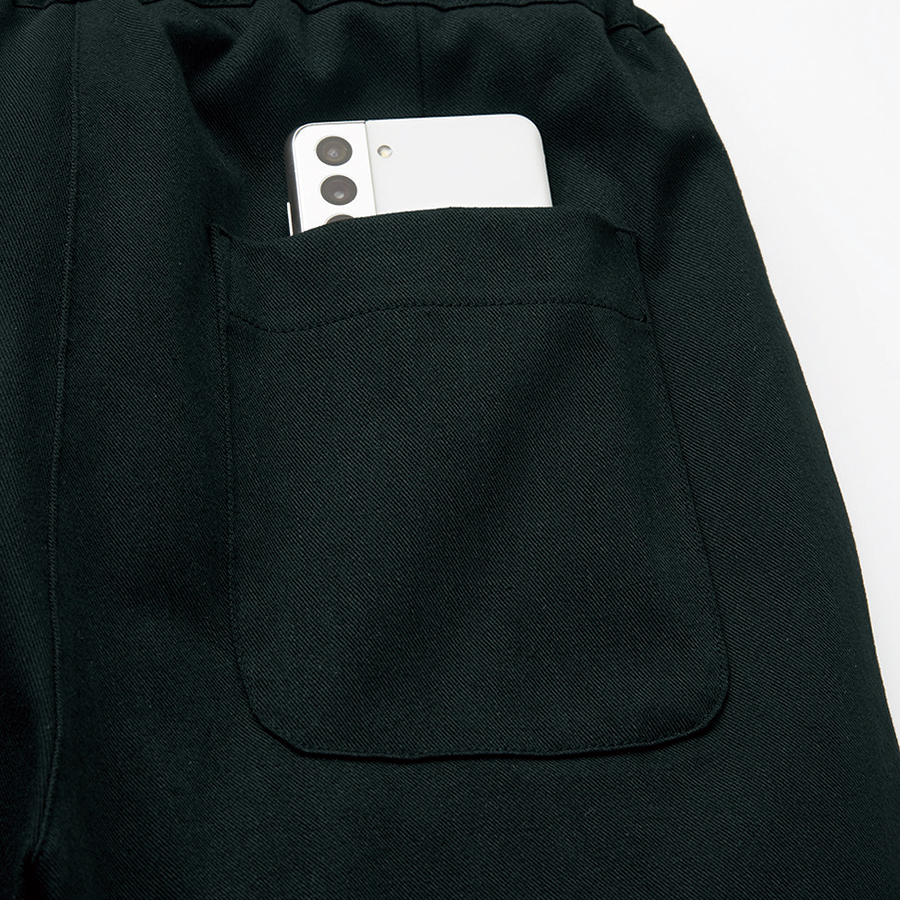 • 後ろポケット付きでスマートフォンなどを入れることができます。
