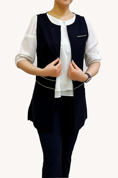 【スタイリッシュワークス-91-34-BK】ベスト風チュニック 【ブラック】