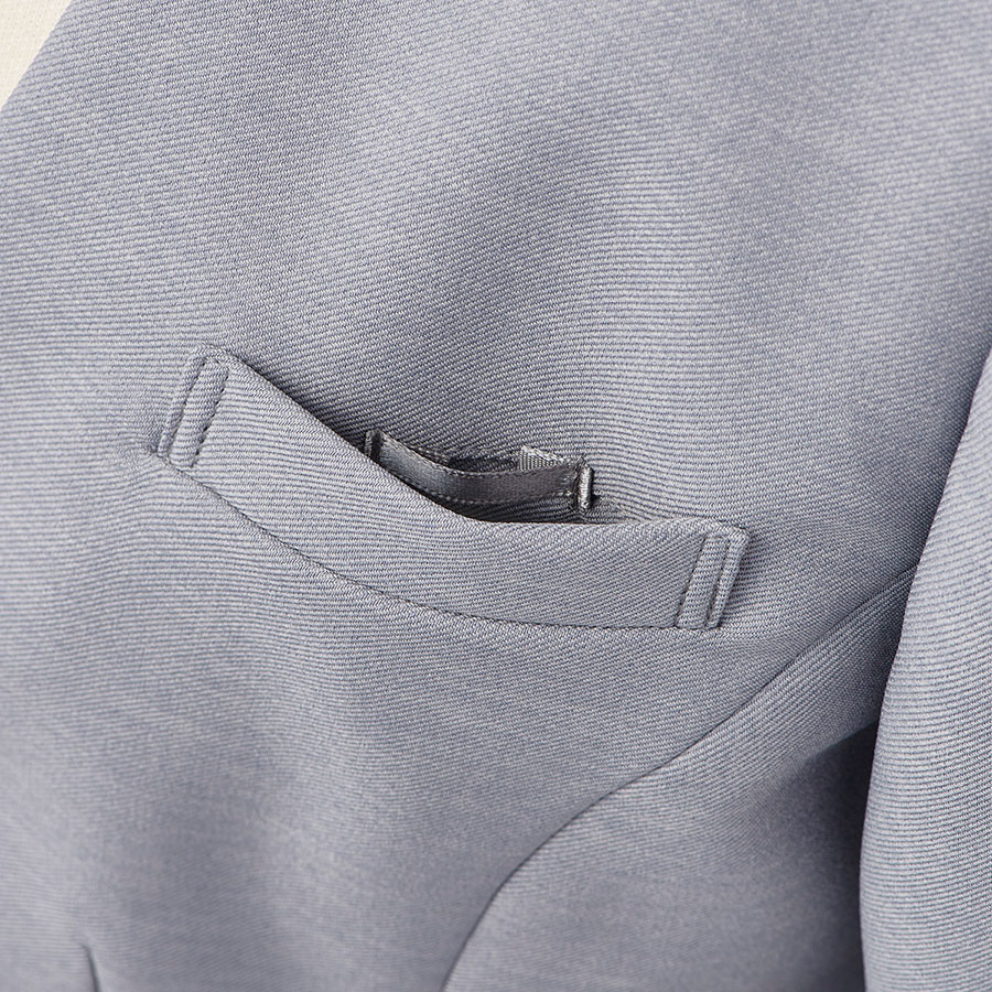 - 総裏、左胸ポケット、両腰ポケット、左胸内側にポケット、袖口リターン可、センターベント、アームホール消臭テープ付、名札ループ