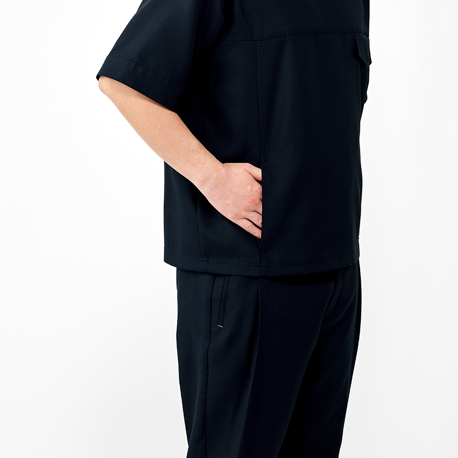 新しいユニフォームのスタイルを提案します。肩口ファスナーで着脱がラクなかぶりタイプ。胸ポケットの飾りフラップがアクセントに。