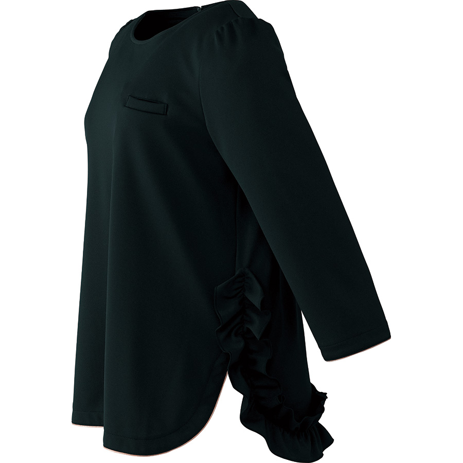 【Unite&Calala/チトセ株式会社-FR-0005-C5】FOLLORAISON7分袖フリルトップス(ネイビー)【ツイルジャージ】