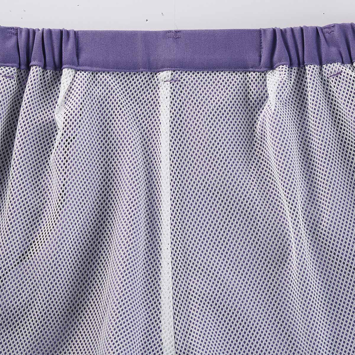 - 脇後ゴム、両脇ポケット、裏地メッシュ、前ファスナー、ベルトループ