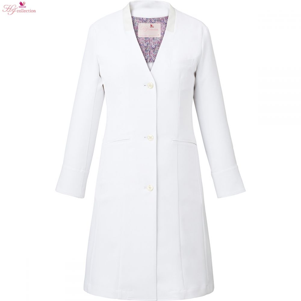【FOLK/フォーク-HI404-1】ワコールHIコレクション-ノーカラーレディースドクターコート(ホワイト)【フルイドツイル】