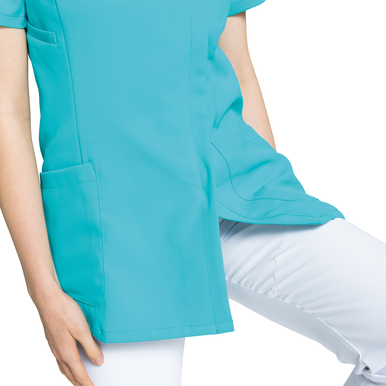 白衣からスクラブへ人気が移る傾向を捉え、欧米体型で作られた輸入スクラブフォルムの欠点を