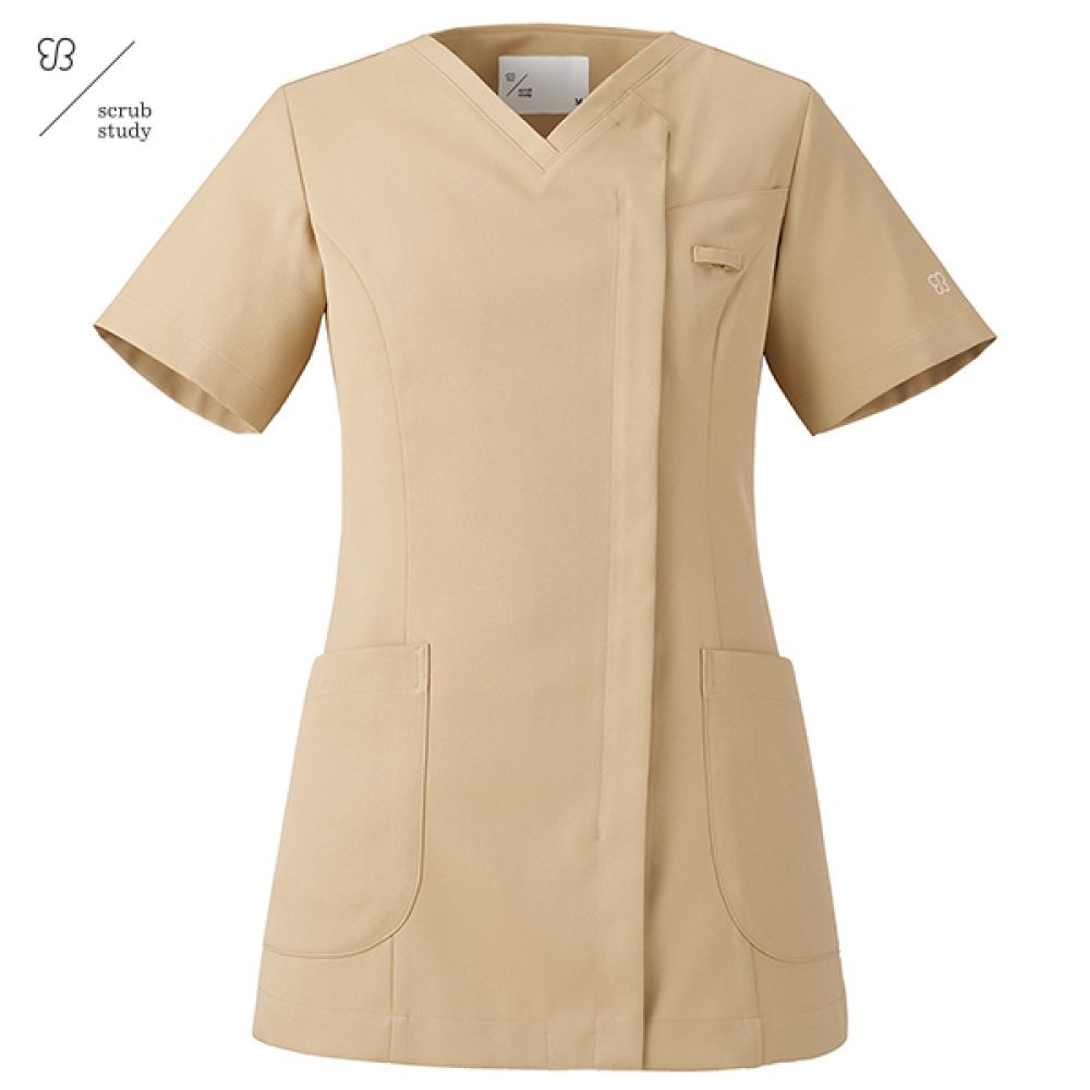 【SprinSALE対象商品】【WEB限定商品-住商モンブラン/uka scrub study-UM500-5/0】半袖レディーススクラブ(サンドベージュ)【ソフトラチネ】