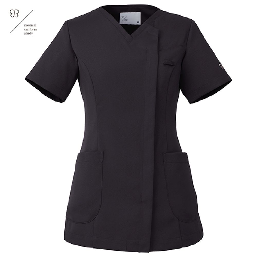 【SprinSALE対象商品】【WEB限定商品-住商モンブラン/uka scrub study-UM500-8/0】半袖レディーススクラブ(チャコールブラック)【ソフトラチネ】