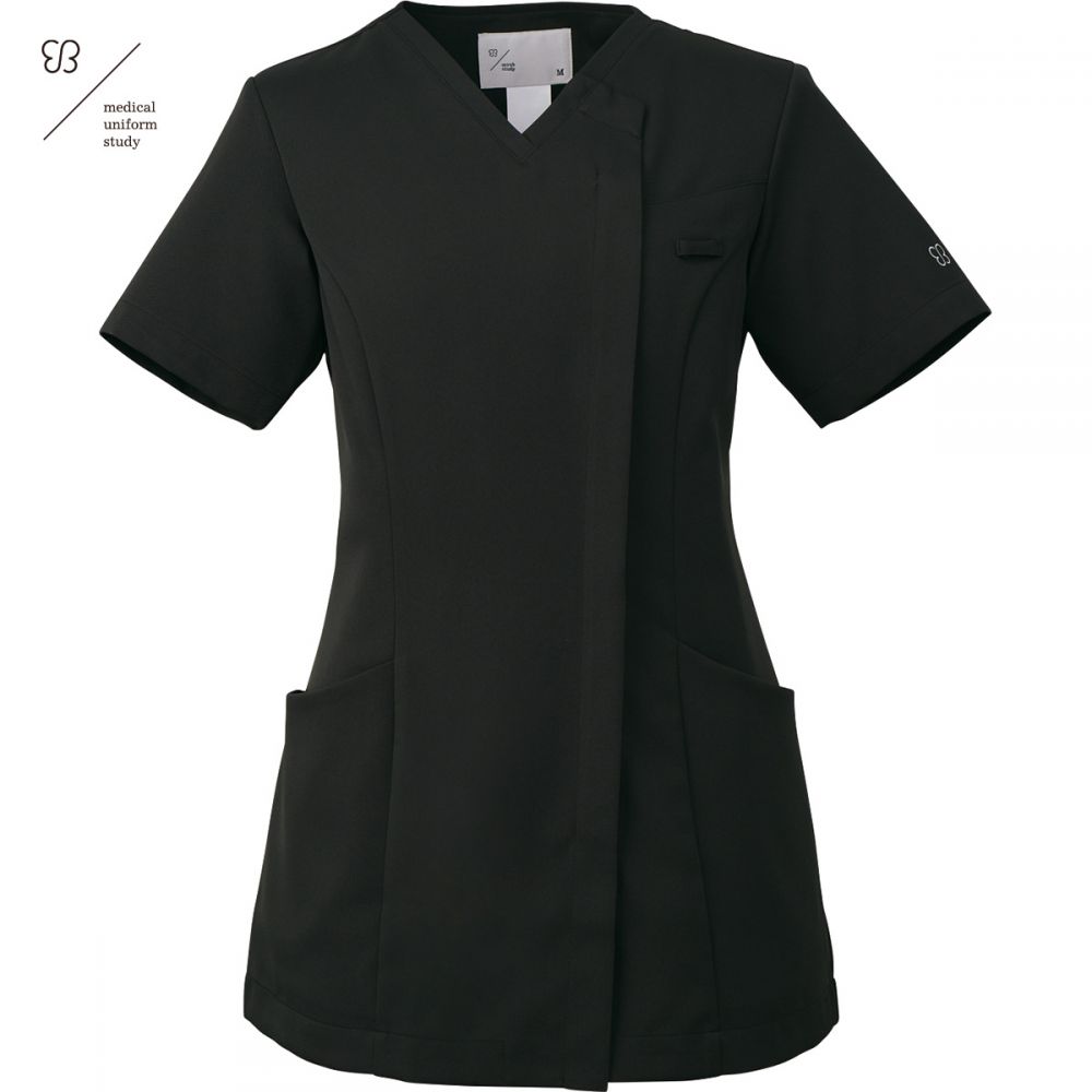 【SprinSALE対象商品】【住商モンブラン/uka medical uniform study-UM501-BK】レディーススクラブ(チャコールブラック)【ソフトラチネ】