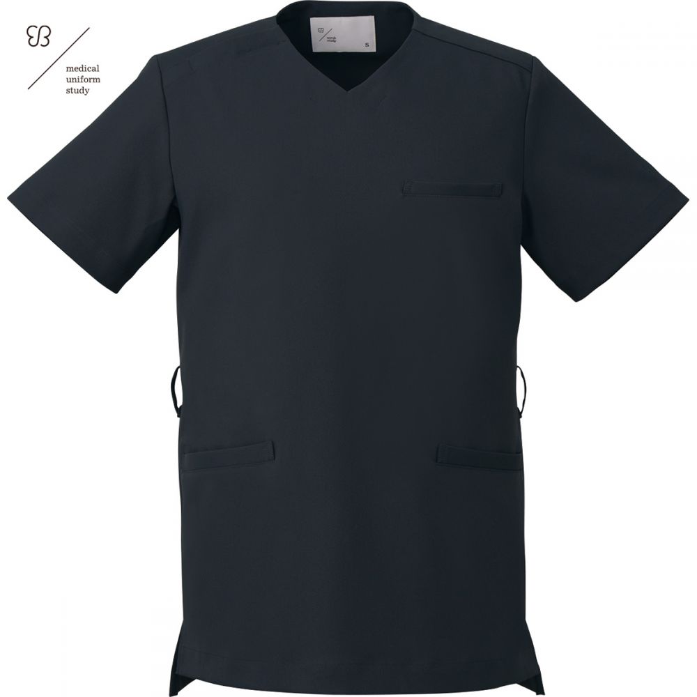 【SprinSALE対象商品】【住商モンブラン/uka medical uniform study-UM502-BK】男女兼用スクラブ(チャコールブラック)【ストレッチダブルクロス】