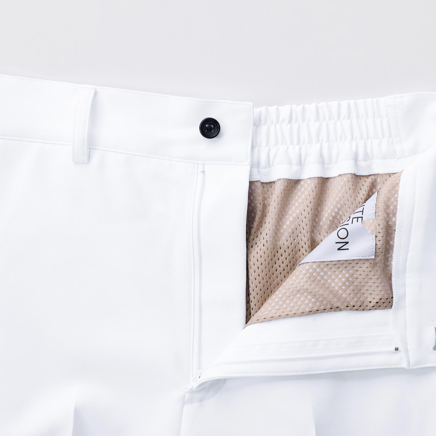 - メッシュ裏地付き、後ろウエストゴム、両脇ポケット、左右ヒップポケット、前ファスナーあき