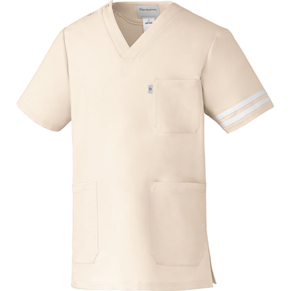【2026年最新エステユニフォーム-Unite&Calala/チトセ株式会社-FR-0007-C72】FOLLORAISON男女兼用スクラブ(ライトベージュ)【ストレッチ平二重織】
