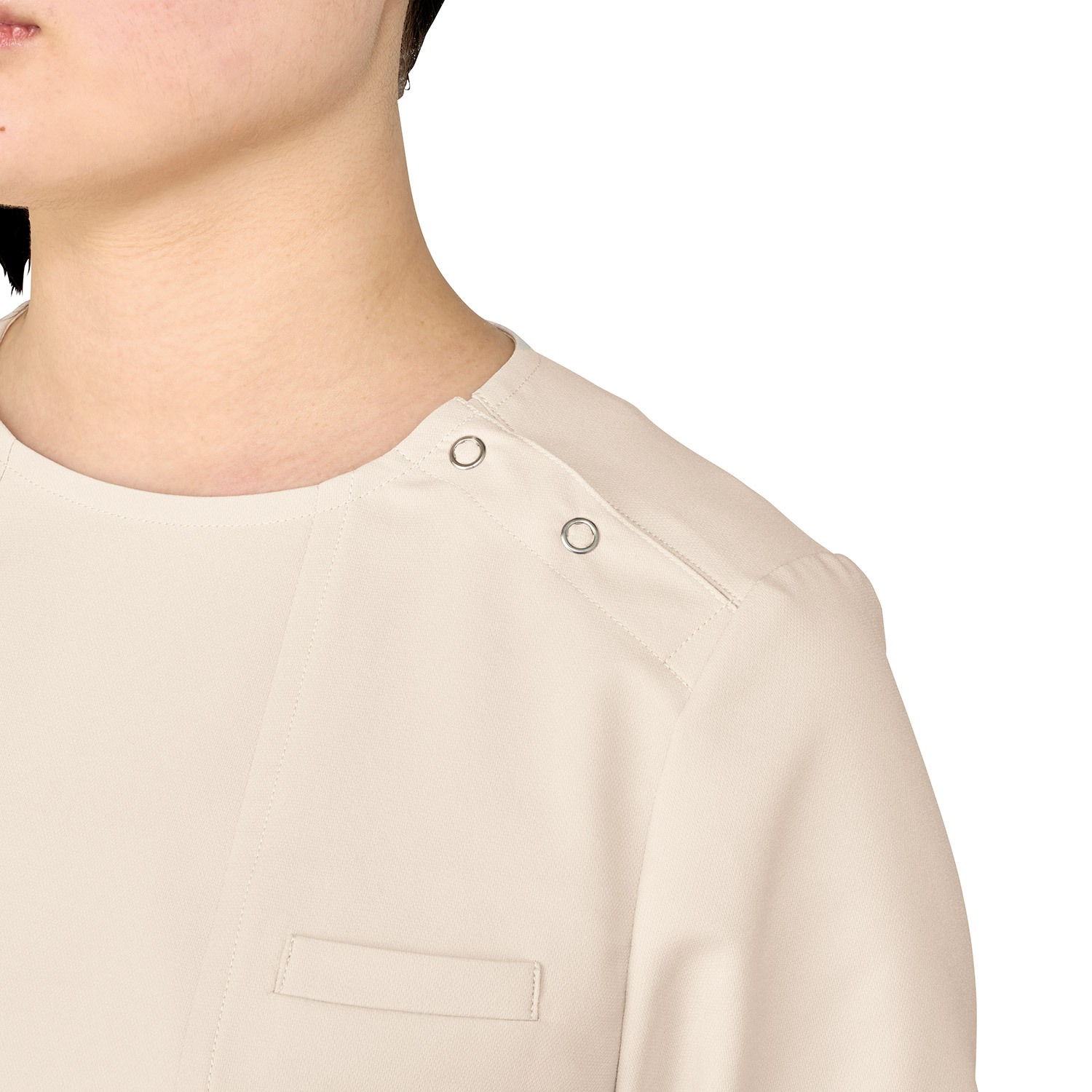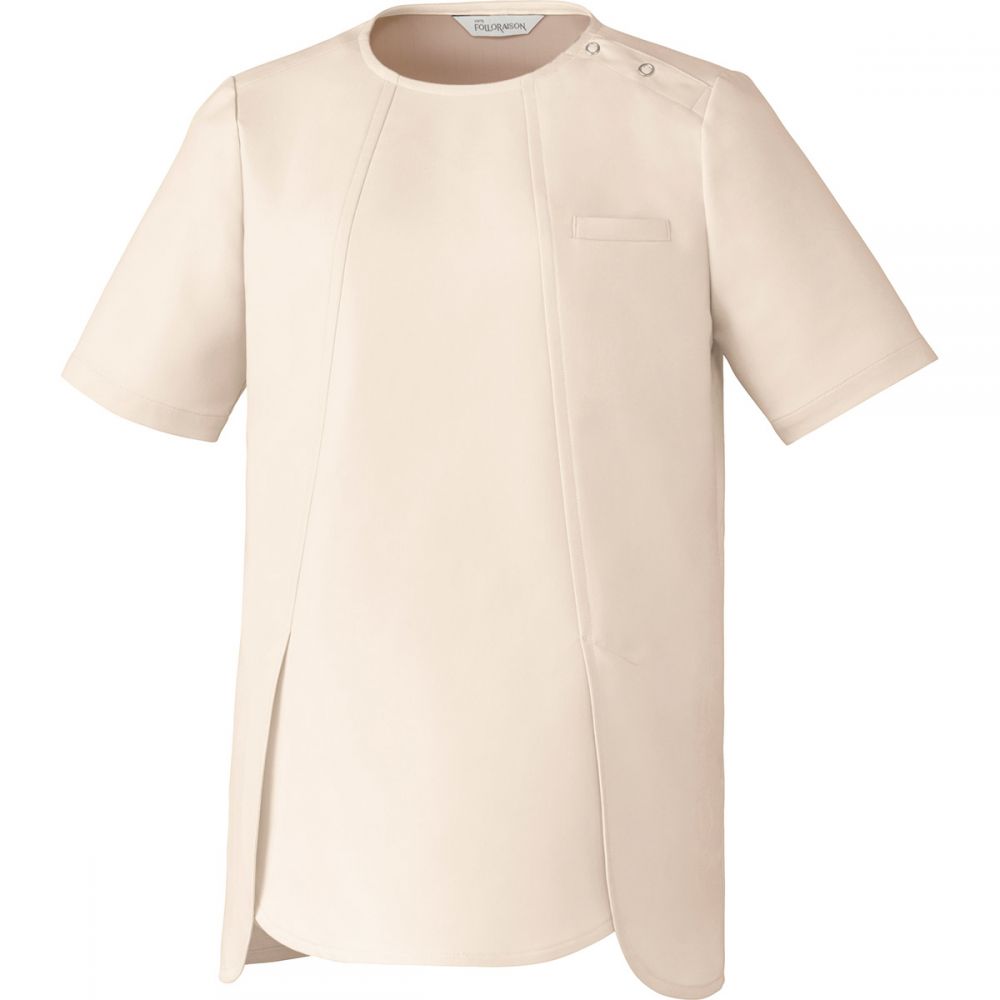 【2026年最新エステユニフォーム-Unite&Calala/チトセ株式会社-FR-0022-C72】FOLLORAISON半袖トップス(ライトベージュ)【ストレッチ平二重織】