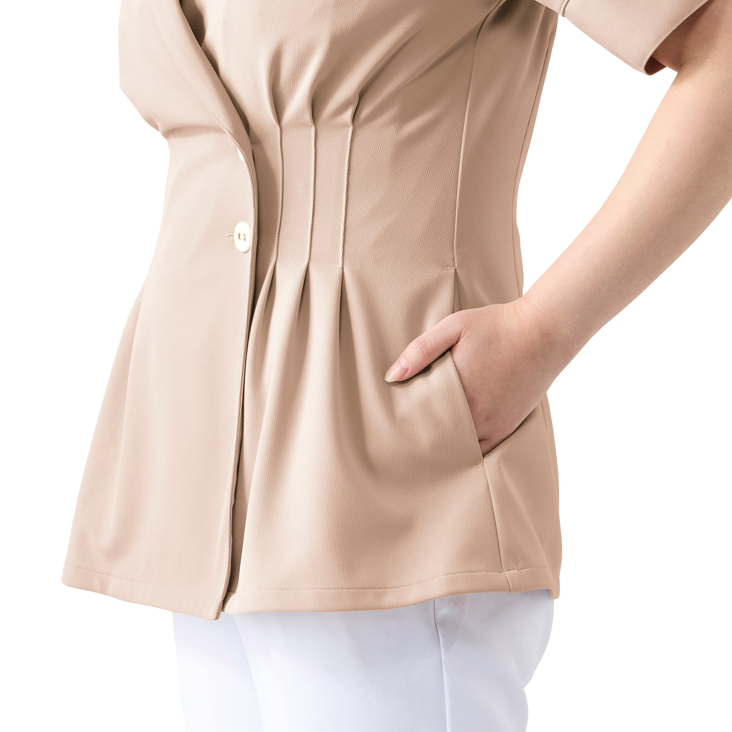 【2026年最新エステユニフォーム-Unite&Calala/チトセ株式会社-FR-0023-C1】FOLLORAISON6分袖ジャケット(ホワイト)【コネクト】