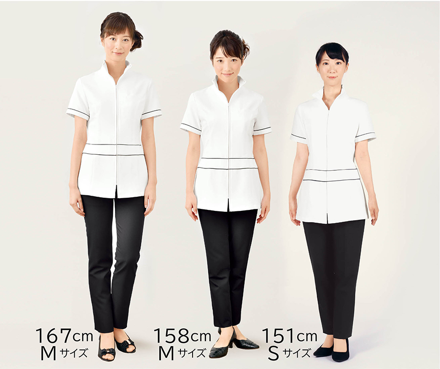 同素材のパンツ(E-3104)や美脚ストレッチパンツ(E-3042)とのコーディネイトがオススメ。