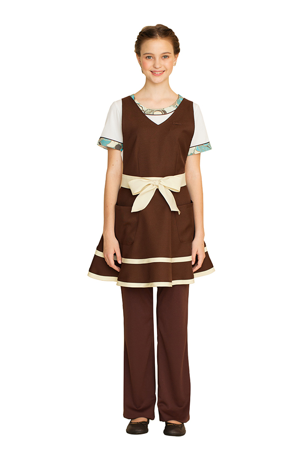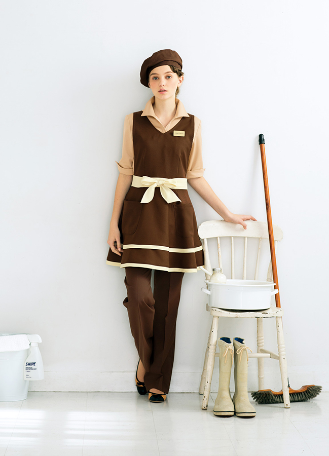 【B-SPA/株式会社ボストン商会-00916-79】胸当てフリルエプロン(ブラウン)【ツイル】