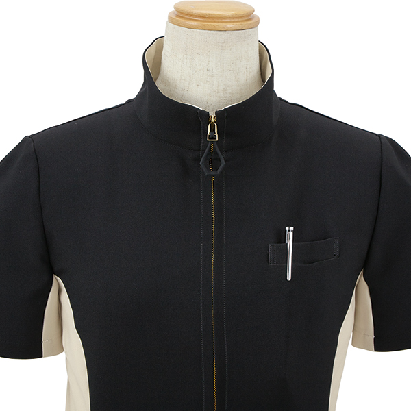 - 前開きファスナー仕様、左胸ポケット、両脇ポケット