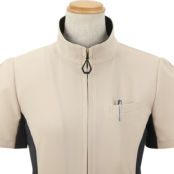 - 前開きファスナー仕様、左胸ポケット、両脇ポケット