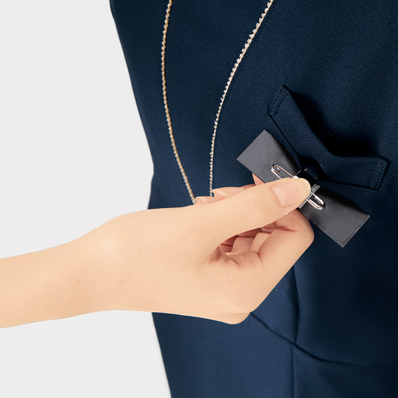 胸ポケットにペンを刺しても邪魔にならない実用性の高い名札ポケット。