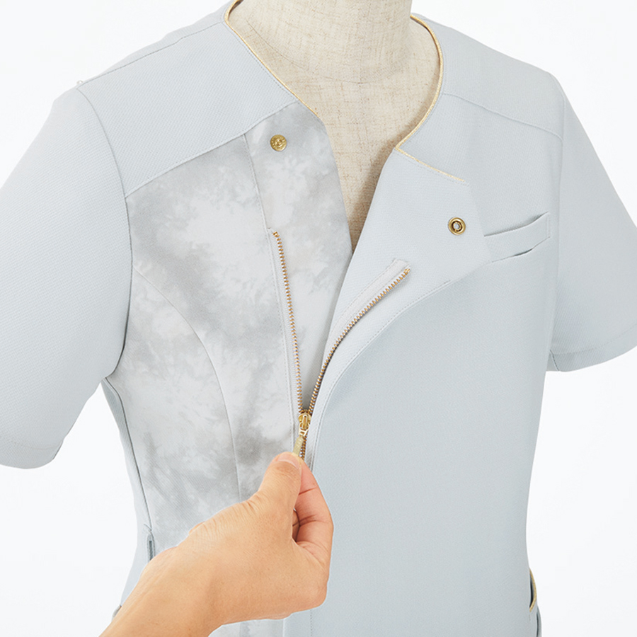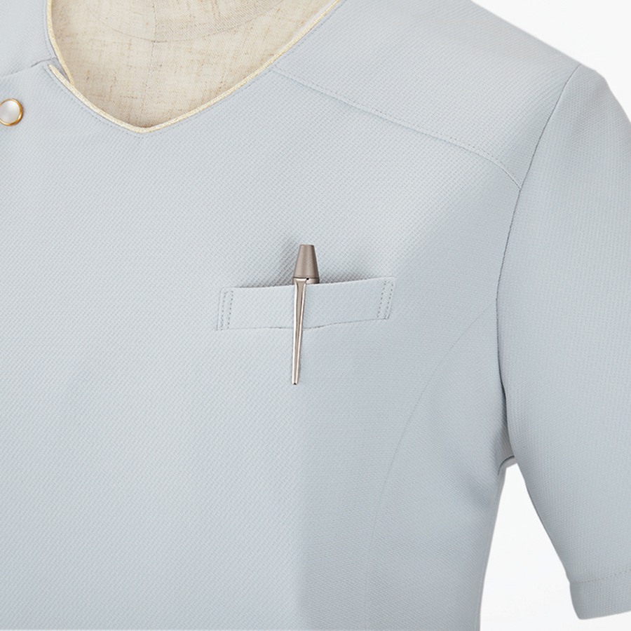 - オールシーズン、ホームクリーニング、2重ポケット付、吸汗速乾、表地:2WAYストレッチ、左胸名札ポケット付、配色:UVカット、接触冷感