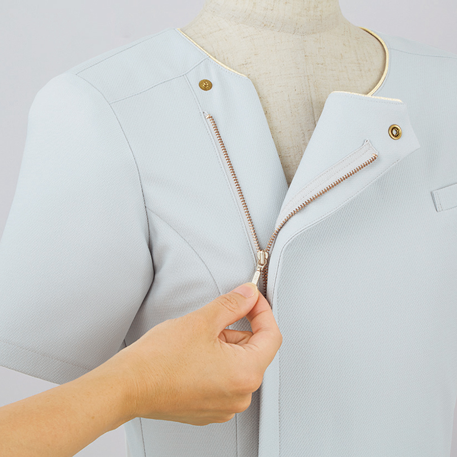 - 両脇ポケット、左胸名札ポケット付