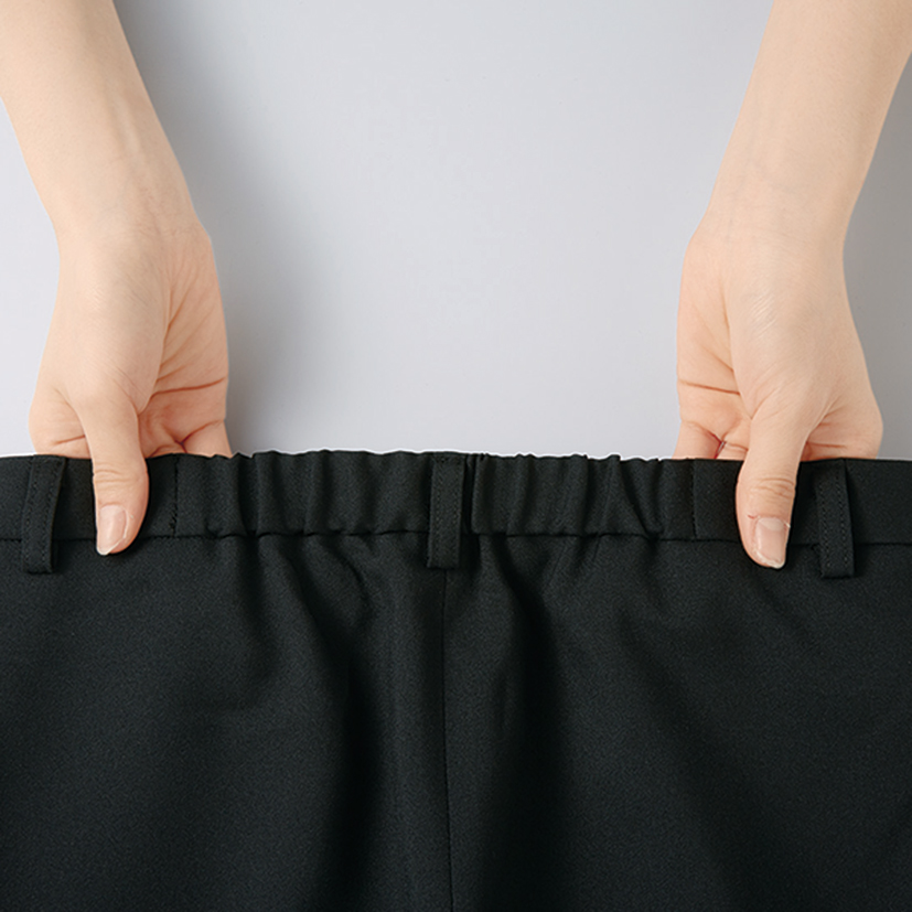 - 後ろゴム仕様、両脇ポケット