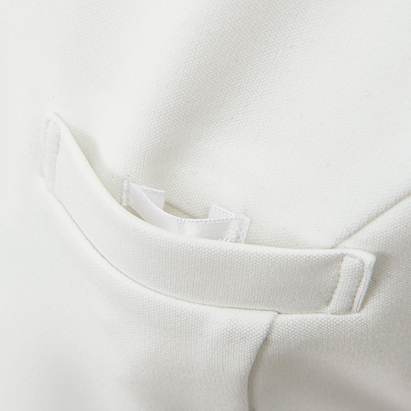 - 左胸ポケット、両脇ポケット、七分袖、袖口スリット、アームホールに消臭テープ付き、名札ループ