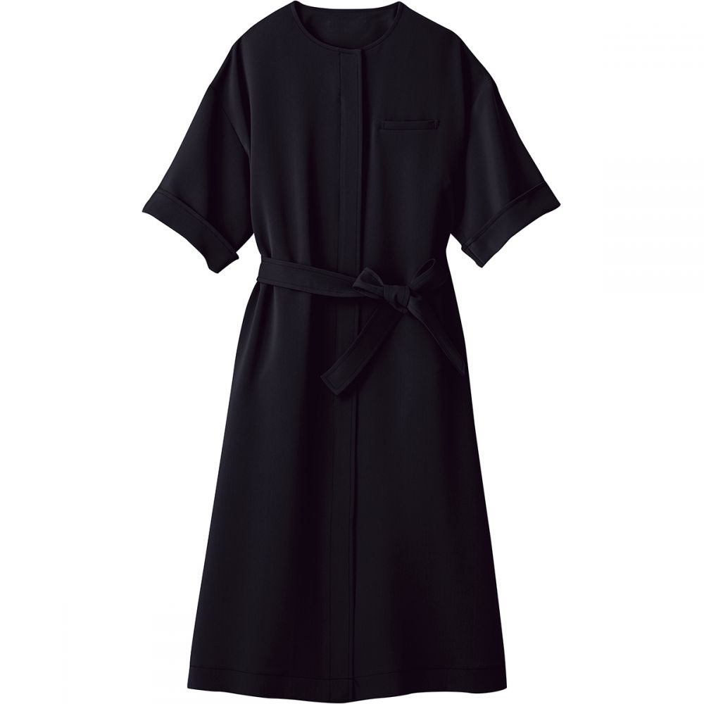【2026年最新エステユニフォーム-HOW CounterBiz/ハネクトーン早川株式会社-7735-8】ワンピース(ブラック)【ナチュラルエコストレッチ】