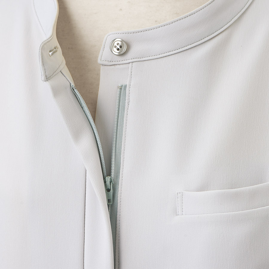 - 左胸ポケット(内名札ループ付)、両腰ポケット、Dカンベルト付・前ファスナー開き、アームホールに消臭テープ付