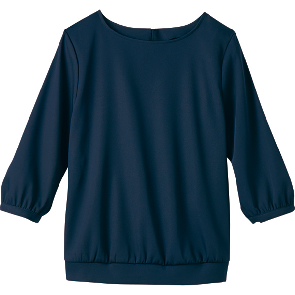 【HOW CounterBiz/ハネクトーン早川株式会社-8464-1】プルオーバーブラウス(ネイビー)【ストレッチエコサテン】