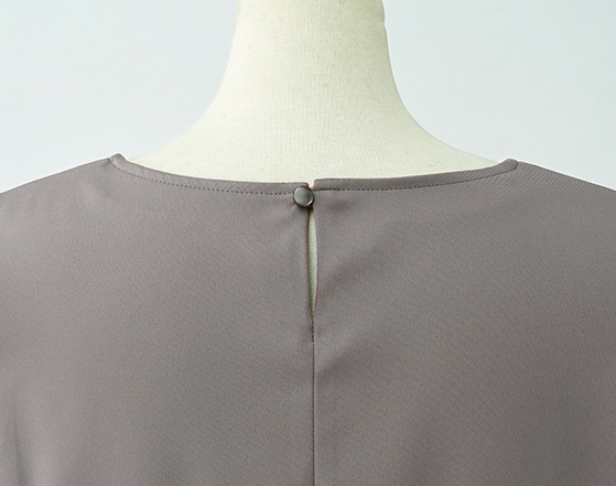 髪形やメイクを気にせず着脱できる、後ろボタン開き仕様