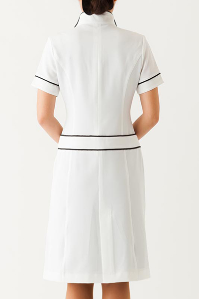 クールな装いのスタンド襟と配色パイピングテープが美しくすっきりとしたラインを演出します。
