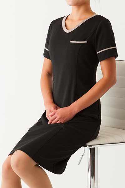 【スタイリッシュワークス-91-07-BKBE】ポーラワンピース(ブラック×ベージュ)
