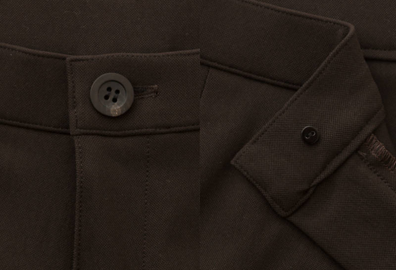 - 前開きファスナー、前両脇ポケット付、ウエストゴム、裾上げテープ付