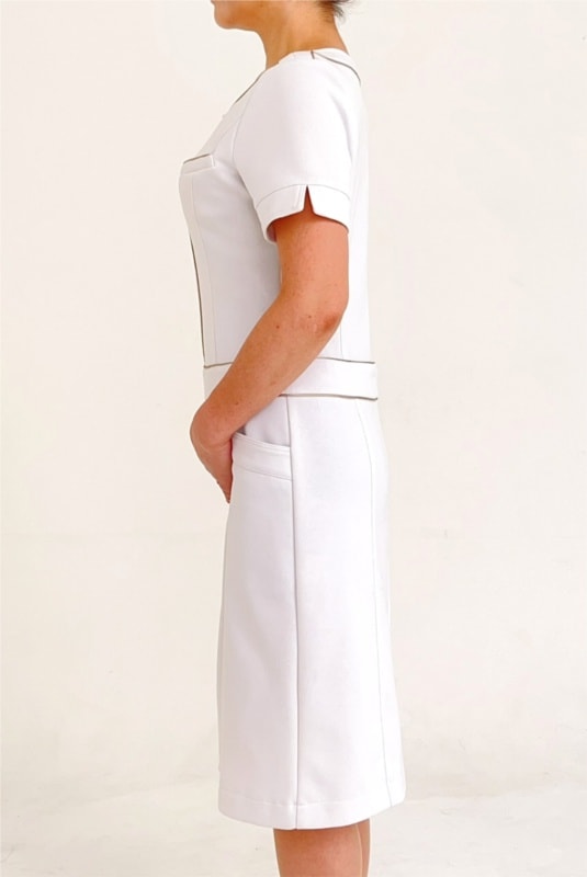 スタイリッシュワークスオリジナルストレッチ素材(国産)を使用した、初めての初めての前空きワンピースです。