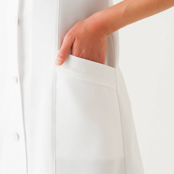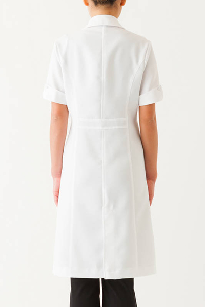 スッキリとしたシルエットで清潔感のある大人シンプルなドクターコート。