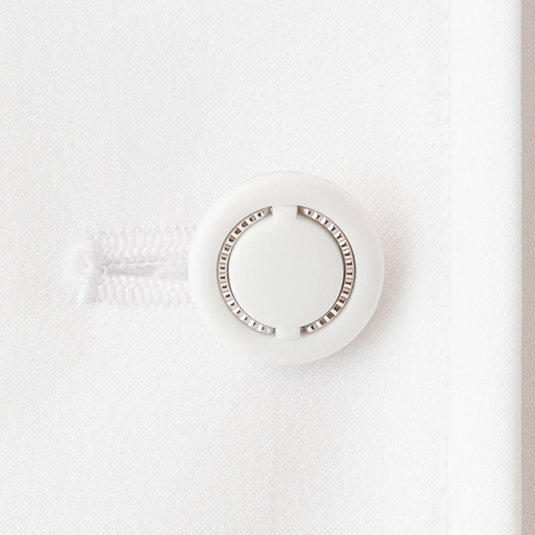 さりげなく光るシルバー使いのボタンを使用することにより、全体の雰囲気をワンランクアップさせます。
