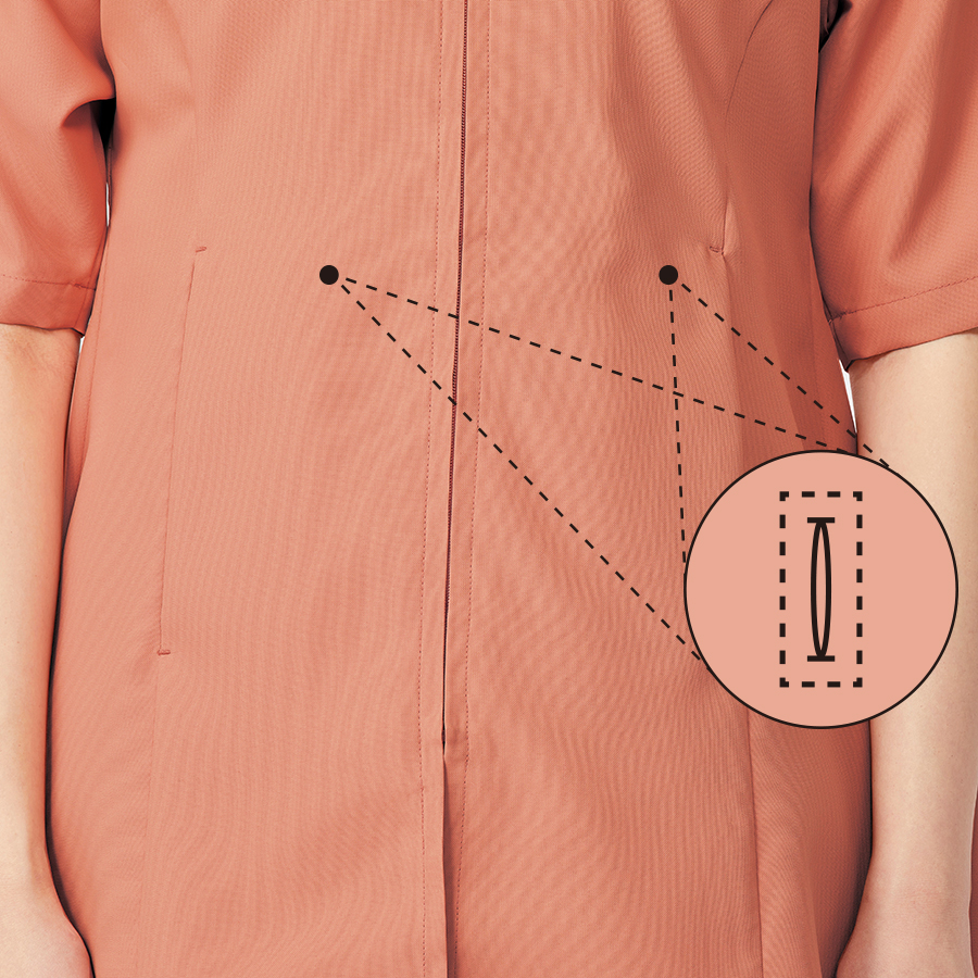 - フロントファスナーあき、両脇ポケット(コード通し用ホール付き) ※特注サイズ作成不可