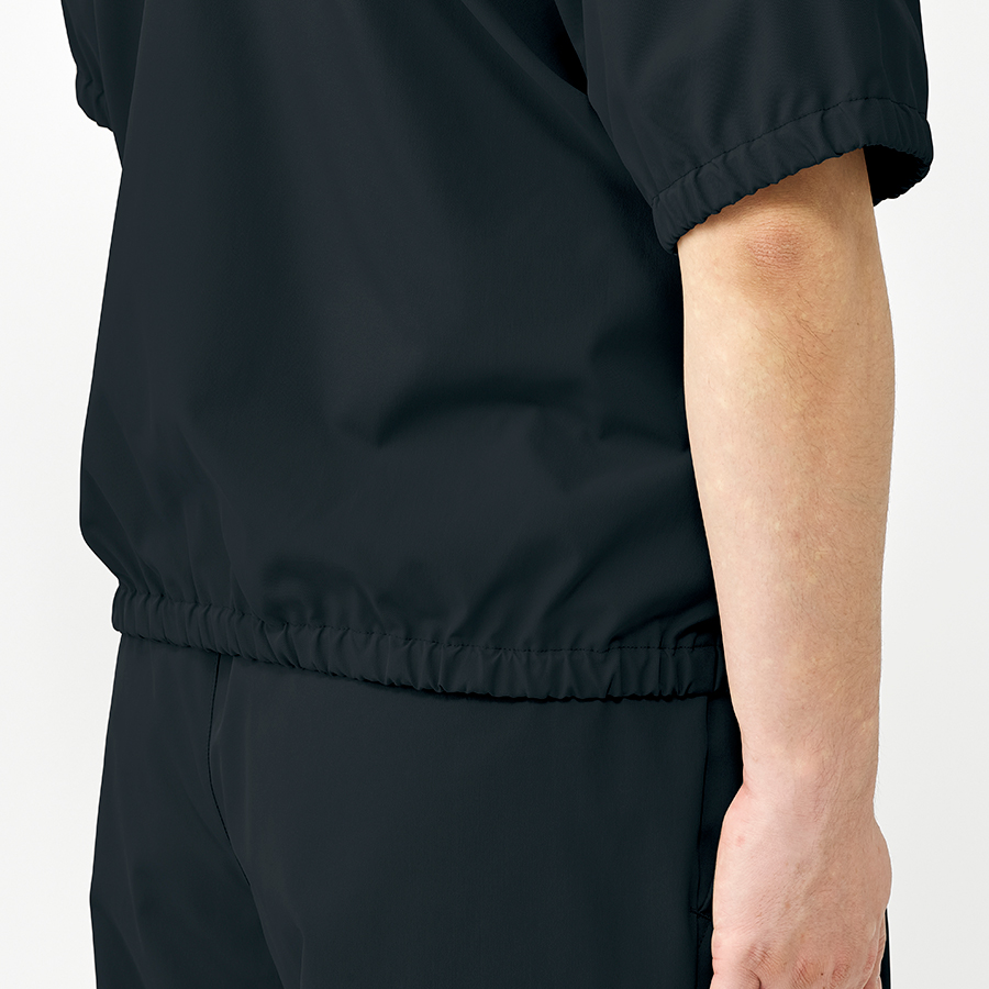 - フロントファスナーあき、左胸ポケット(ペン差しループ付)、両脇ポケット、袖口ゴム、裾ゴム