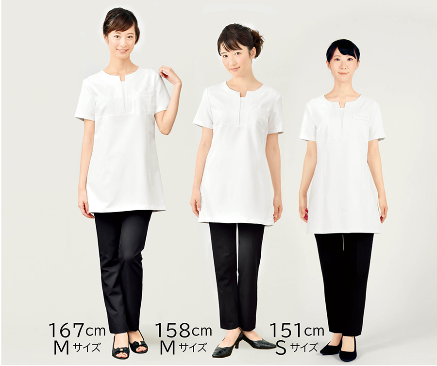 同素材のパンツ(E-3104)や美脚ストレッチパンツ(E-3042)とのコーディネートがオススメ。