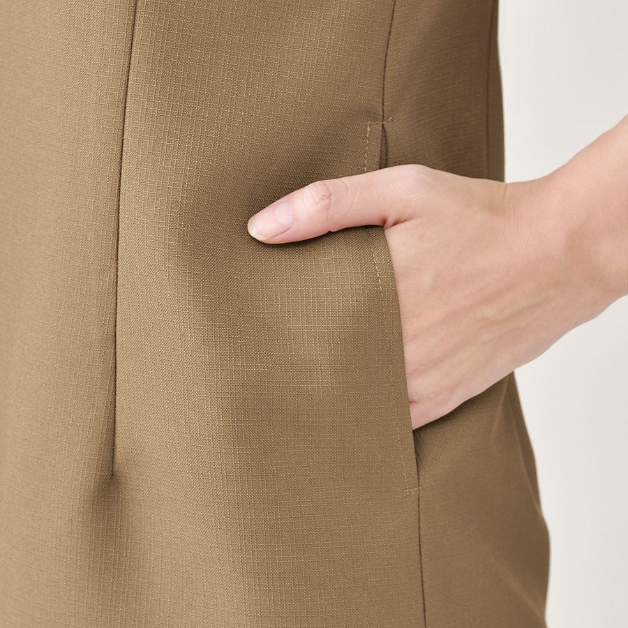 - 左胸・両脇ポケット、後ろ裾ベンツ、後ろファスナー開き