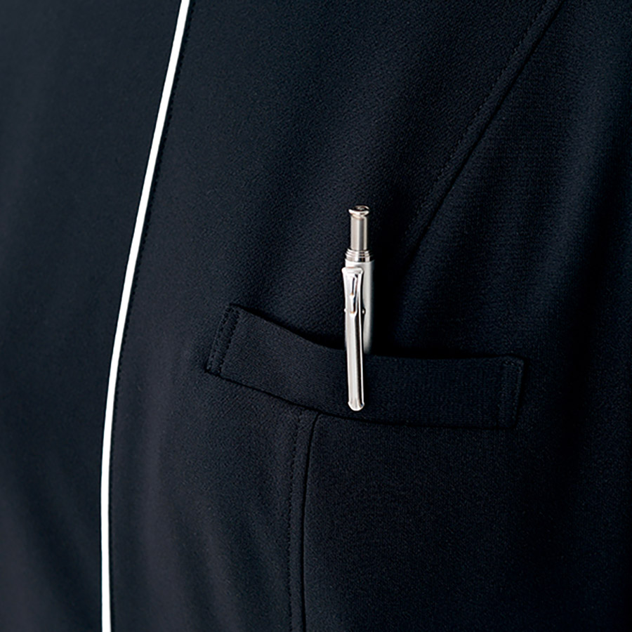 縦に入ったホワイトのパイピングにより、スマートシルエットを演出します。