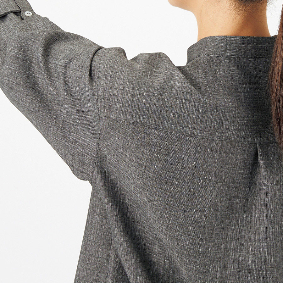 柔らかでシワになりにくい、ゆったりシルエットのダンガリーシャツ。