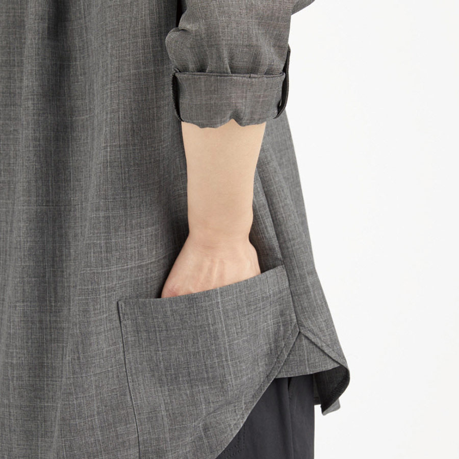 ナチュラルでスタイリッシュなデザインは、日常空間になじみ、ライフスタイルを豊かにします。ゆったりとした旬のスタイルをデザインに取り入れ、機能はインナーが見えないバストケアピッチや、収納に便利なバックポケット、手元の動きを助ける袖の2way仕様など、使いやすい工夫がたっぷりです。