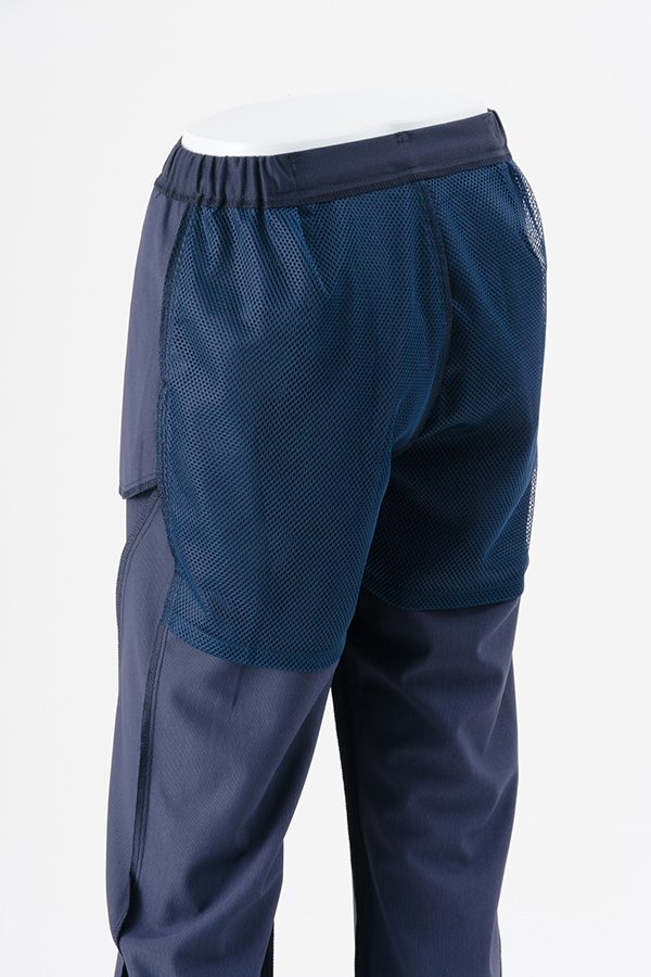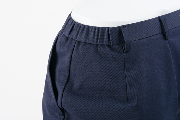 - 前後ダーツ、ヒップ、わたりともぴったりシルエット、後ろのみ裏メッシュ付き、脇ゴム、両腰ポケット、ストレートシルエット