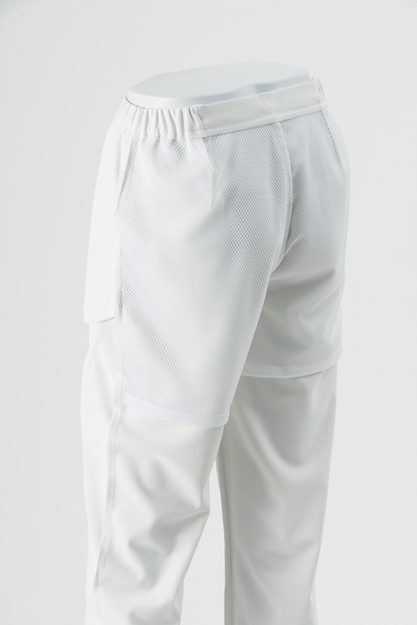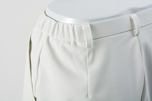 - 前後ダーツ、ヒップ、わたりともぴったりシルエット、後ろのみ裏メッシュ付き、脇ゴム、両腰ポケット、ストレートシルエット