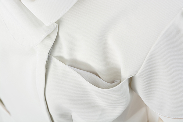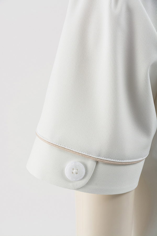 アシンメトリーになっているロールカラーが女性らしい優しい雰囲気です。