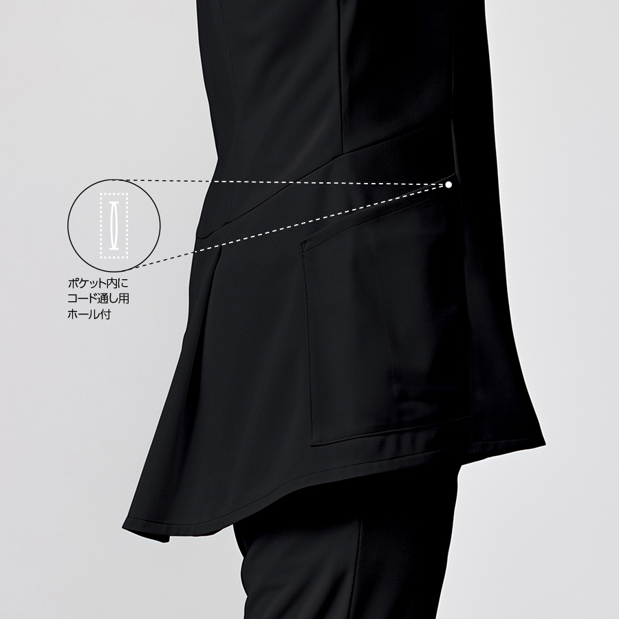 - 後ろファスナー、左胸ポケット、両脇ポケット(右のみ中ポケット・コード通し用ホール付き)